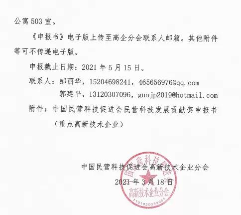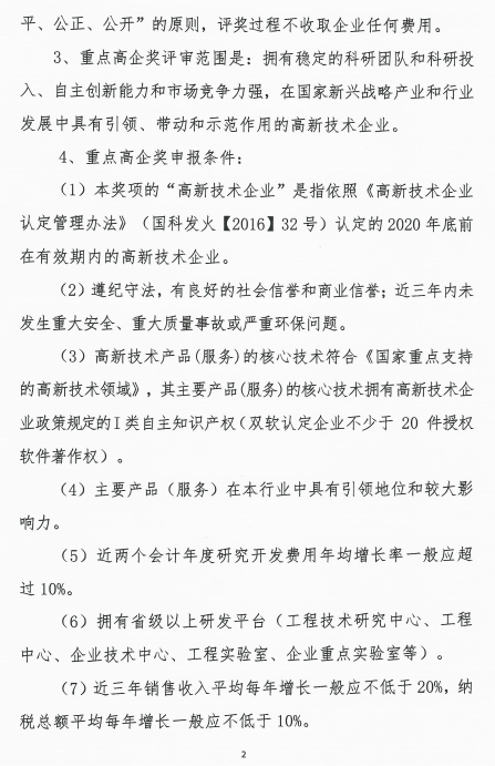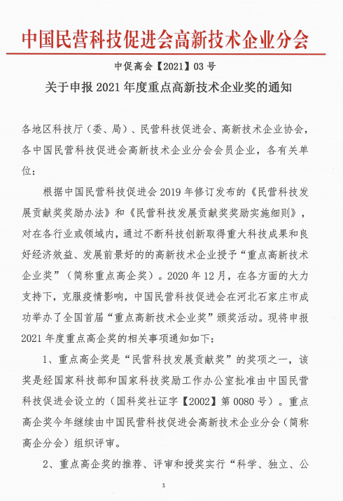 關(guān)于申報(bào)2021年度全國(guó)“重點(diǎn)高新技術(shù)企業(yè)獎(jiǎng)”的通知