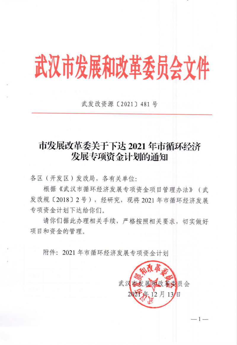 關于下達2021年市循環(huán)經(jīng)濟發(fā)展專項資金計劃的通知
