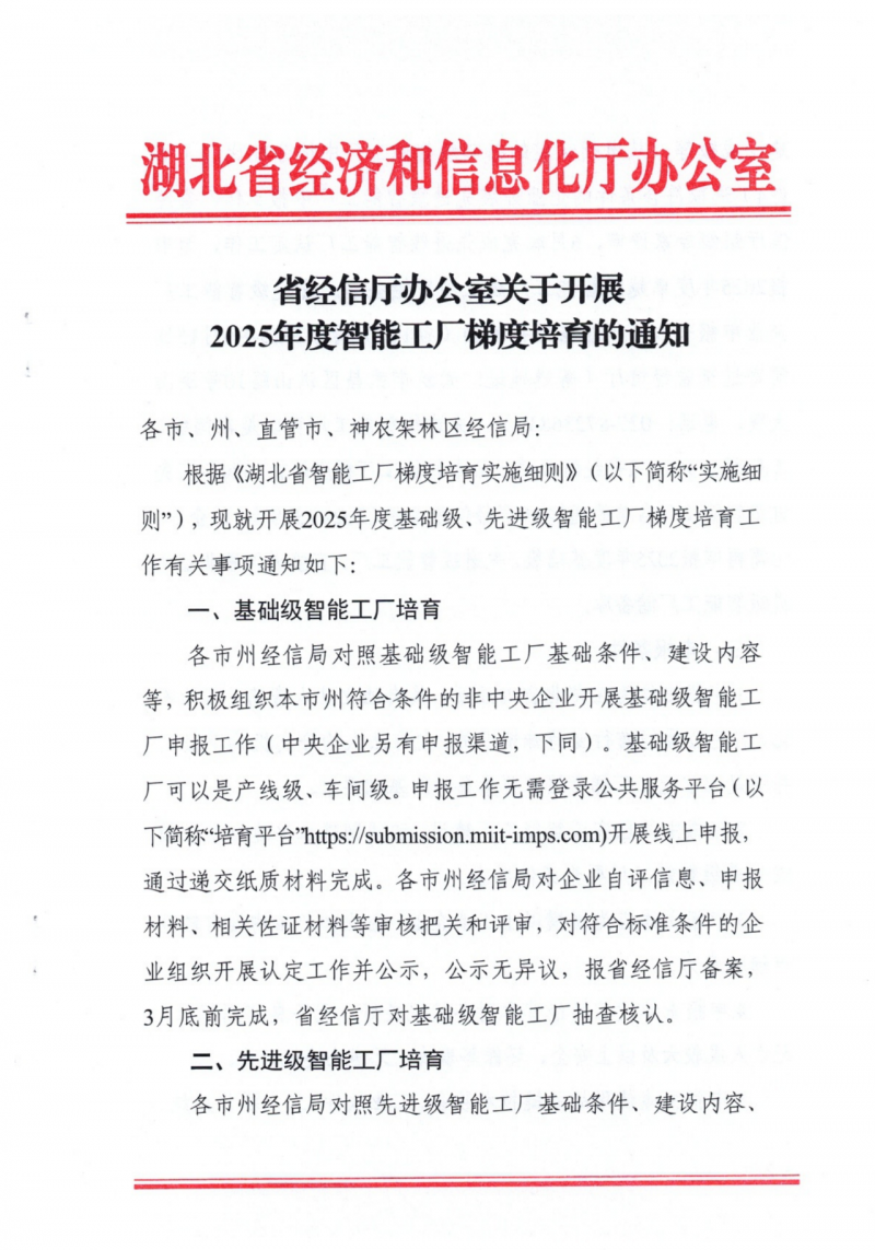 省經(jīng)信廳辦公室關(guān)于開展2025年度智能工廠梯度培育的通知